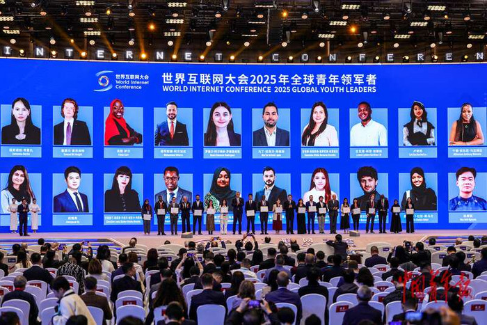 11月7日,浙江乌镇,2025世界互联网大会上,来自20个国家和地区的20位青年脱颖而出,成为全球青年领军者,其中年龄最小的19岁。陈思阳/摄